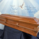 Italienische Fraketruhe im Nussbaumton, massiv mit edler Wurzelholzeinlage im Deckel und Unterkasten sowie einer Perlleistenverzierung mit goldenen Eckenverzierungen im Ober- und Unterkasten, inklusive 6-Fach-Beschlag